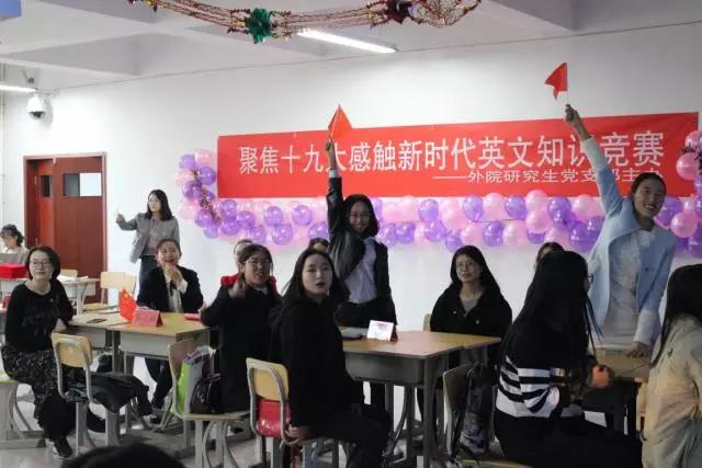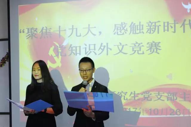 2017年10月26日下午四点,在党的十九大胜利闭幕之际,为了让青年党员们更加深刻地了解党和十九大的相关知识,金年会官网研究生党支部在文史楼224教室举办了以“聚焦十九大 感触新时代”为主题的英文知识竞赛。