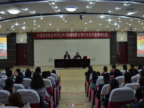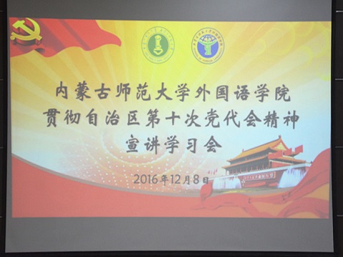 为深入学习贯彻自治区第十次党代会精神,深刻领会自治区党委书记李纪恒同志在第十次党代会上的报告内容,按照校党委的学习部署和傅永春书记在党委中心组扩大学习会上对第十次党代会精神宣讲的要求,金年会jinnianhuicom党总支积极响应,认真学习,并组织学院全体教职工及全院学生代表300余人,于2016年12月8日下午在盛乐校区图书馆一楼报告厅举办了“金年会jinnianhuicom贯彻自治区第十次党代会精神宣讲学习会”。宣讲学习会有幸邀请到内蒙古自治区党委政研室副主任刘文纪同志担任主讲人,金年会jinnianhuicom党总支副书记(主持工作)拓俊杰老师主持了宣讲会。
