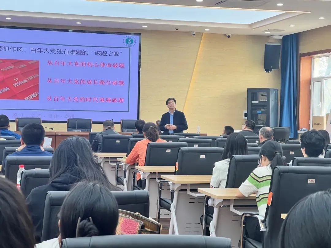 讲座中,张瑞军教授以《学习习近平总书记关于加强党的作风建设的重要论述》为主题,展开全面深入的讲解。他从抓作风的必要性、作风问题的本质、推进作风建设的方法路径这三个关键层面,层层深入剖析中央八项规定及其实施细则精神的重要意义、核心内涵。讲座逻辑严谨、条理清晰,内容丰富详实,讲解生动形象,使在场党员深受启发。