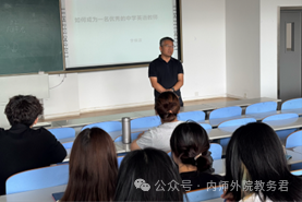 为进一步提升英语专业师范生学科专业素养,2025年6月19日,金年会官网英语教研室特邀金年会诚信信誉至上附属学校副校长李晓波,为英语系师范生带来题为“如何成为一名优秀的中学英语教师”的专题讲座。本场讲座由英语系副主任张贵超主持,2022、2023级英语专业学生积极到场聆听。