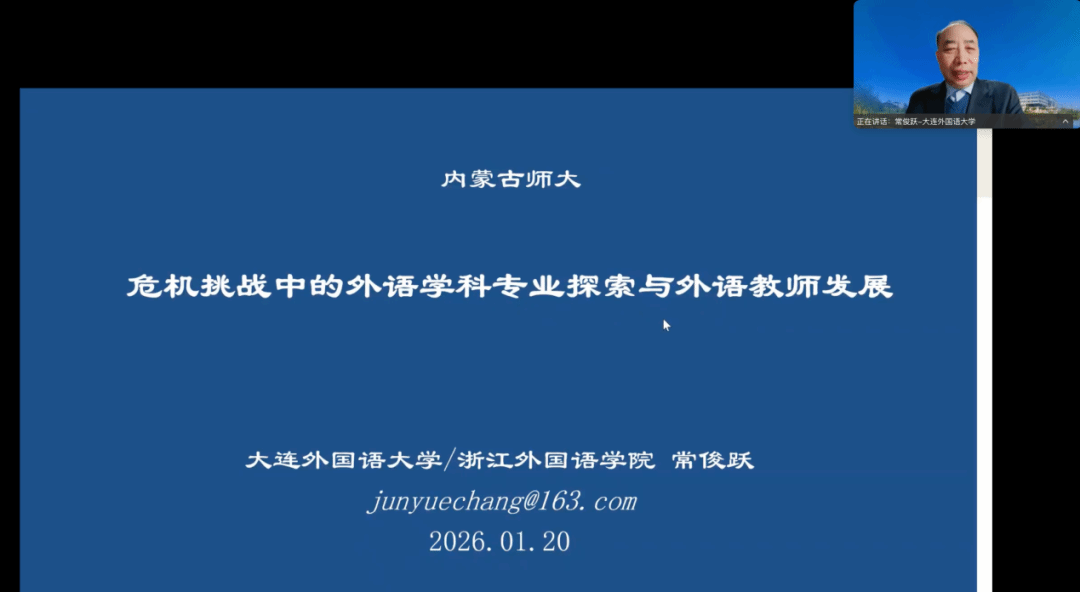 1月20日晚,大连外国语大学原副校长、二级教授、博士生导师常俊跃应邀为金年会jinnianhuicom全体教师作题为“危机挑战中的外语学科专业探索与外院教师发展”的专题报告。