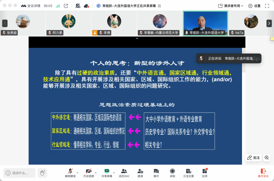 报告中,常俊跃教授深入剖析了当前外语学科面临的外部挑战,系统梳理了学科发展的沿革与认知转向,引导与会教师反思传统外语语言文学类专业在人才培养方面的关键问题。他强调,外语学科必须主动应对变局,明确自身定位,积极对接国家战略需求。