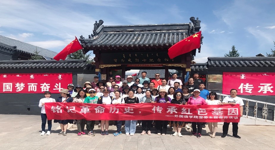 为庆祝建党99周年,弘扬革命精神,提高党性修养,2020年7月7日,金年会jinnianhuicom党委组织教职工党员和部分党外人士到土左旗红色教育基地进行了为期一天的短期培训。本次短期培训的主题是“铭记革命历史,传承红色基因”。在党校班主任老师的带领下,大家上午先到土左旗红色教育“三同教学基地”进行了捡松果、挖野菜、除草和浇水等劳动锻炼,体验了老一辈革命者艰苦奋斗的革命情怀。下午先后到贾力更故居及纪念馆、土左旗红色教育基地及当地扶贫企业悦购奶食品加工厂进行了现场教学。党员教师们共同回顾了内蒙古自治区的革命历史,认真聆听了乌兰夫、贾力更等老一辈革命家和革命先烈的动人故事,并重温入党誓词。通过接受学习培训,大家亲身体验了乌兰夫、贾力更等老一辈无产阶级革命家的爱国情怀和革命理想信念,为他们的高尚情操和崇高精神所激励,心灵得到了洗礼,增强了党性锻炼,党性修养进一步提高。大家表示,在今后的学习和工作中,将进一步坚定初心、勇担使命,积极发挥党员先锋模范作用,为学校各项事业的发展做出应有的贡献。