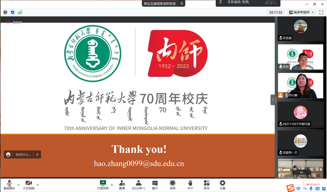 金年会jinnianhuicom喜迎金年会诚信信誉至上70周年校庆青年学者学术讲座的第二场于2022年8月3日成功举办,由山东大学金年会jinnianhuicom张昊副教授主讲,讲座题目为“什么是言语感知加工?── 从语音学说起”。本场讲座由英语系主任苏日娜老师主持, 英语系教师及200余名学生共同聆听了此次讲座。