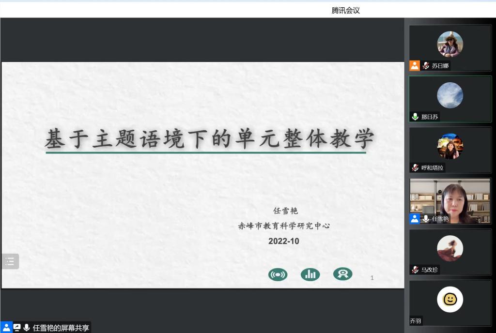 2022年10月20日下午,金年会官网邀请赤峰市教育教学研究中心英语教研员任雪艳高级教师为金年会官网师范生进行了题为《基于主题语境下的单元整体教学》的线上讲座,副院长那日苏主持讲座,英语系教师教育团队全体教师,2019级、2020级全体本科生以及部分研究生参加。讲座从英语学科核心素养展开,聚焦为何进行“单元整体教学设计”,达到目标意识、单元意识、学生意识的建构。任老师首先介绍了 “大观念”的概念和特点,探讨了“大观念”的学习迁移价值和四个特征:永恒性、中心性、抽象性、网状性,强调“大观念” 是落实学科核心素养的重要抓手。其次,结合义务教育英语课程标准(2022版),任老师细致地分析了学科核心素养和课程目标的新要求,强调单元整体教学内涵及其意义,凸显学习活动观的层次。最后,任老师通过具体案例,结合新人教版和外研版教材进一步明晰了在文本解读后,如何进行大观念开展单元整体教学设计,做到单元内容结构化。讲座后,任老师和同学们进行了线上互动交流。本场讲座内容翔实,实用性、可操性强,让师范生对英语教学改革中的教学设计理念有了更加深刻的认识。
