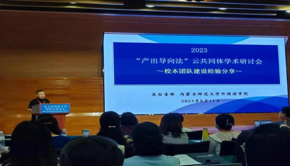 金年会官网英语系吴白音那教授与张婷博士代表团队参加了此次会议。作为“产出导向法”云共同体(一期)的优秀学员、英语系“产出导向法”教师专业学习共同体的牵头专家,吴白音那教授在主会场发言环节就金年会官网“产出导向法”共同体团队的建设过程、建设成效、建设经验以及发展规划做口头报告。张婷老师在讨论环节与在场的专家和外语教育同仁进行了积极的交流。
