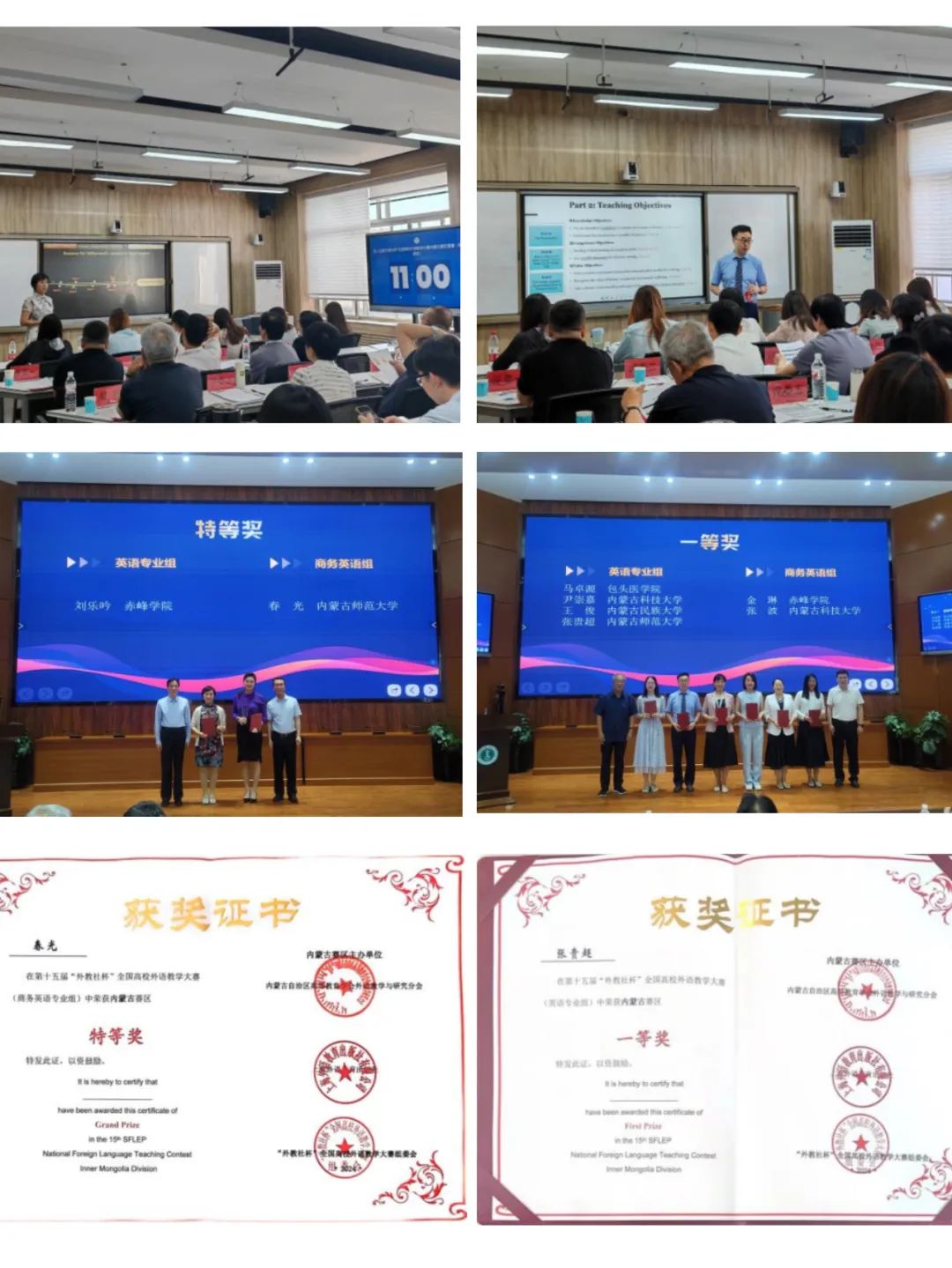 2024年6月29日至30日,第十五届“外教社杯”全国高校外语教学大赛内蒙古赛区复赛和决赛在金年会官网赛罕校区举行。金年会官网英语系专任教师春光和张贵超两位老师经过两天的激烈角逐分别获得了商务英语组特等奖和英语专业组一等奖的好成绩。