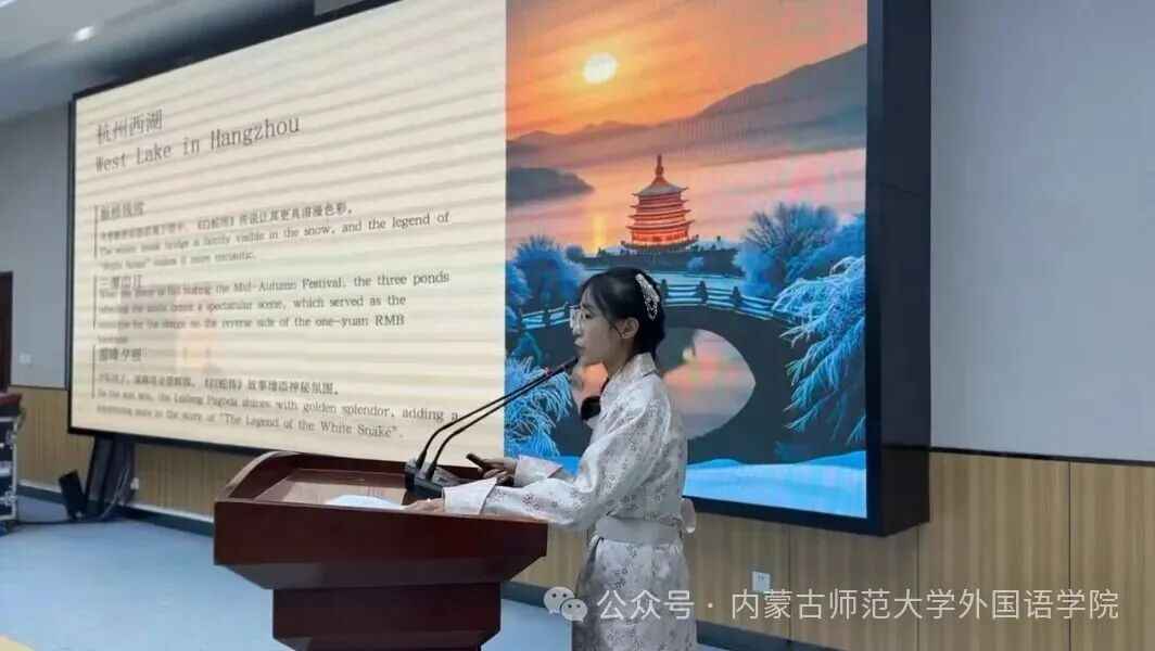 决赛环节中,选手们围绕“美丽中国”这一主题,从文化传承、时代发展、个人成长等多重视角展开演讲。他们以流畅的语言、生动的表达和真挚的情感,将语言艺术与思想深度相融合,充分展现了新时代青年在外语学习中的实践成果与综合素养。