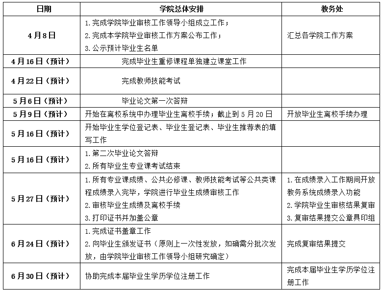 注:以上工作具体完成时间及先后顺序会随学校、学院具体情况做适当调整,以最终完成时间为准。