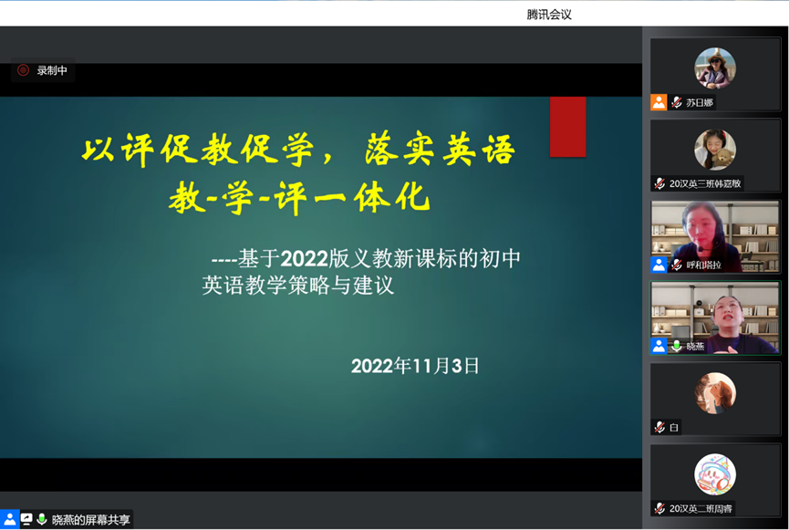 以上系列讲座内容翔实,实用性强,可操性强,有助于帮助师范生加深对新课标的理解,加深对新课程改革下教学评一体化设计的认识,为英语专业师范生在中学英语教学设计及实际操作方面提供经验、答疑解惑,为2020级师范生明年开展教育实习奠定基础,对进一步提升师范生的英语学科专业素养和教学实践能力具有重要指导意义。