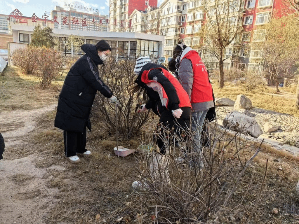 为营造“共建共治共享”的社会氛围和“干净、整洁、文明、有序”的辖区环境,讲好“全方位建设“模范自治区”的故事。2023年11月17日金年会官网“语你同行”志愿者服务队深入赛罕区金宇文苑社区开展社区清洁志愿活动,引导志愿者投身社会服务,在社会治理现代化建设中积极作为,展现外院青年活力,以更好的精神面貌建设文明城区。