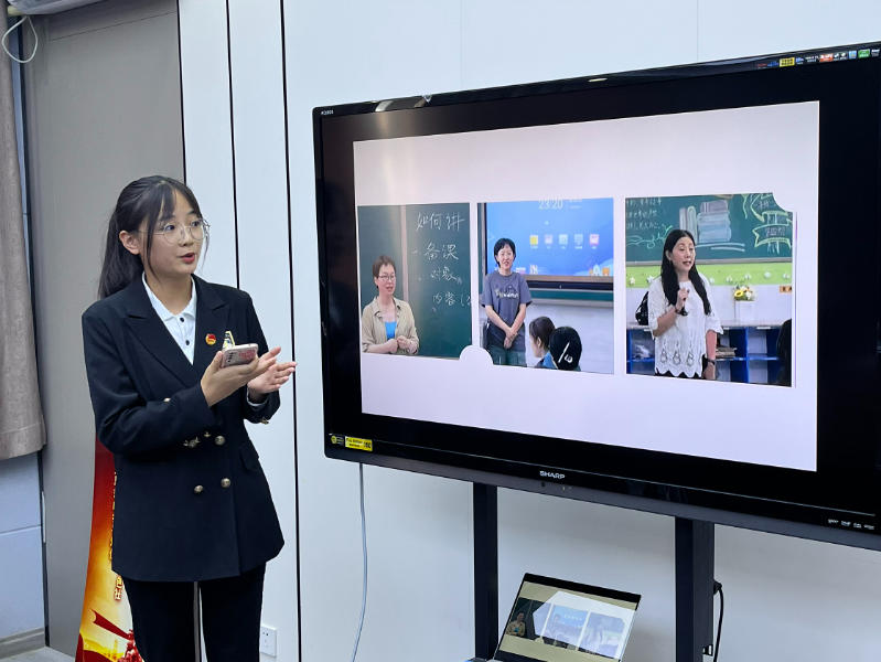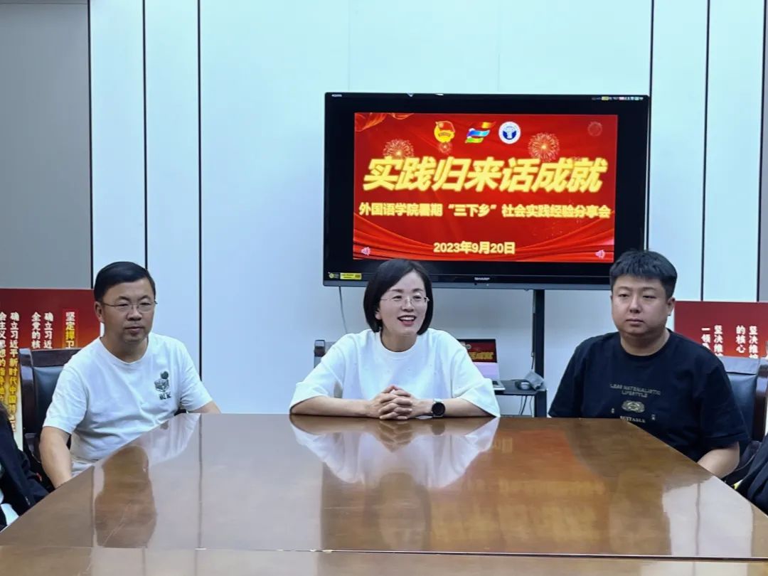 随后,2020级汉英一班张蓓、2020级汉英一班张晓怡、2021级商务英语班冯东蒙三位同学作实践经验汇报和分享。她们从教学情况为切入点,分享了自己的教学方法及实际应用情况,并在最后指出,通过本次“三下乡”对乡村教育有了更深刻的认识,也激发了她们的学习热情。