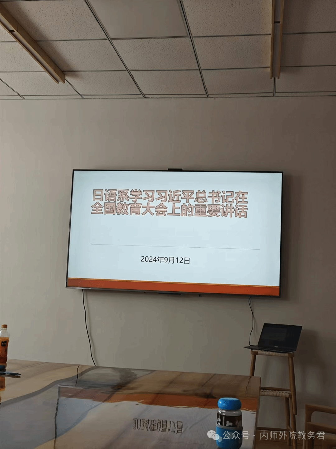 首先日语系全体教师学习了习近平总书记在全国教育大会上的讲话。为践行讲话精神,李红侠老师以日语系课程《理解当代中国》为例,从使用教材、课程内容的角度讲解了日语专业课程中教材融入思政的过程。