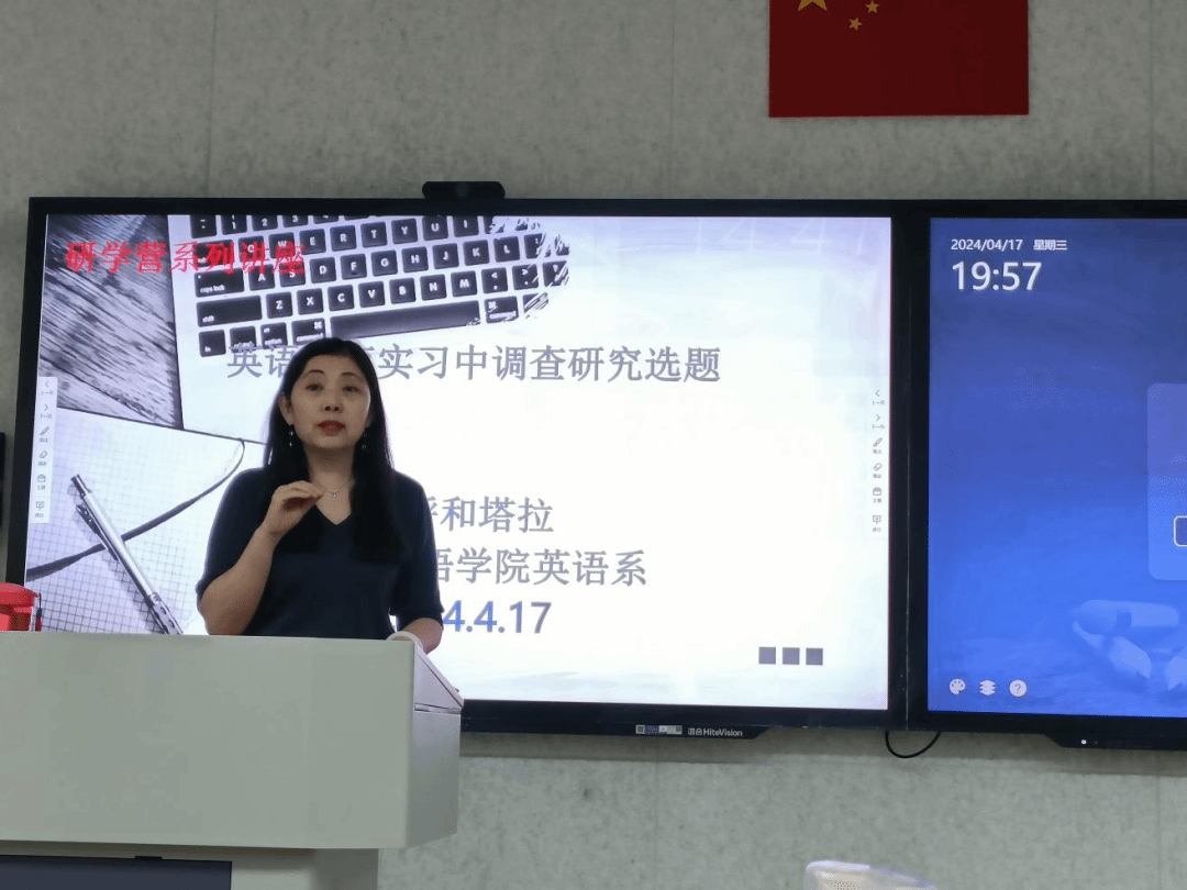 本次讲座题目为“英语教育实习中调查研究选题”。呼和塔拉老师从往届实习生在教育实习中所面临的选题困惑引入,说明了英语教育实习中调查研究选题中存在的如选题偏大、证据不足、选题陈旧等问题,引导学生重视选题的科学性和前沿性,建议学生关注国家时政热点及相关教育政策改革动态。此外,呼和塔拉老师着重介绍了外语教学研究的内涵,帮助同学们充分认知外语教学研究的研究方法、研究过程和研究理念。最后,呼和塔拉老师详细解读了教育调查报告和教育实习研究报告的撰写方法,并对同学们提出的各种疑惑和问题进行了耐心细致地解答和交流。