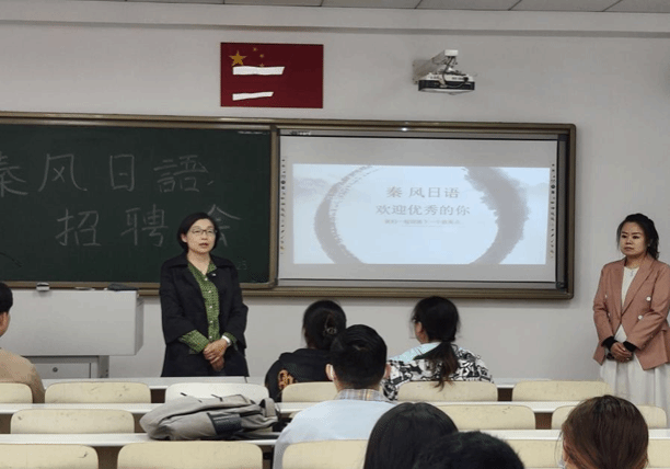 宣讲会上内蒙古云聚人力资源有限公司秦风日语项目负责人吕娇为大家进行了宣讲。介绍了集团发展历程、业务布局及企业文化,并对教学、行政等招聘岗位的职责、要求和职业发展路径进行详细解读,并与参会学生进行了交流,回答了学生们关于公司、岗位以及应聘流程等各种问题。