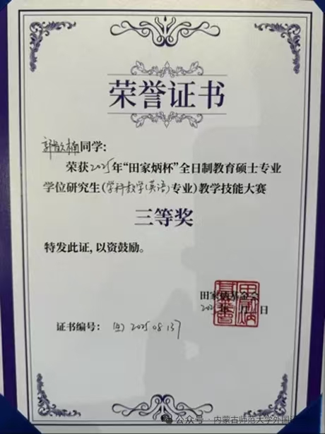 同学在本次比赛中均获三等奖!这一成绩不仅是对金年会官网学科教学(英语)专业学位研究生培养成效的有力印证,更彰显了学院在人才培养道路上