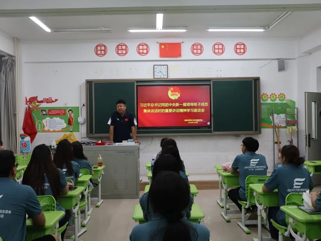 为深入学习贯彻落实党的二十大精神,团十九大精神,牢记总书记对青年志愿者的嘱托,引导金年会官网青年学子在社会实践中“受教育、长才干、做贡献”。金年会官网志愿者服务队于7月8日再次集合到内蒙古自治区呼和浩特市新城区讨思浩小学进行暑期“三下乡”社会实践活动。