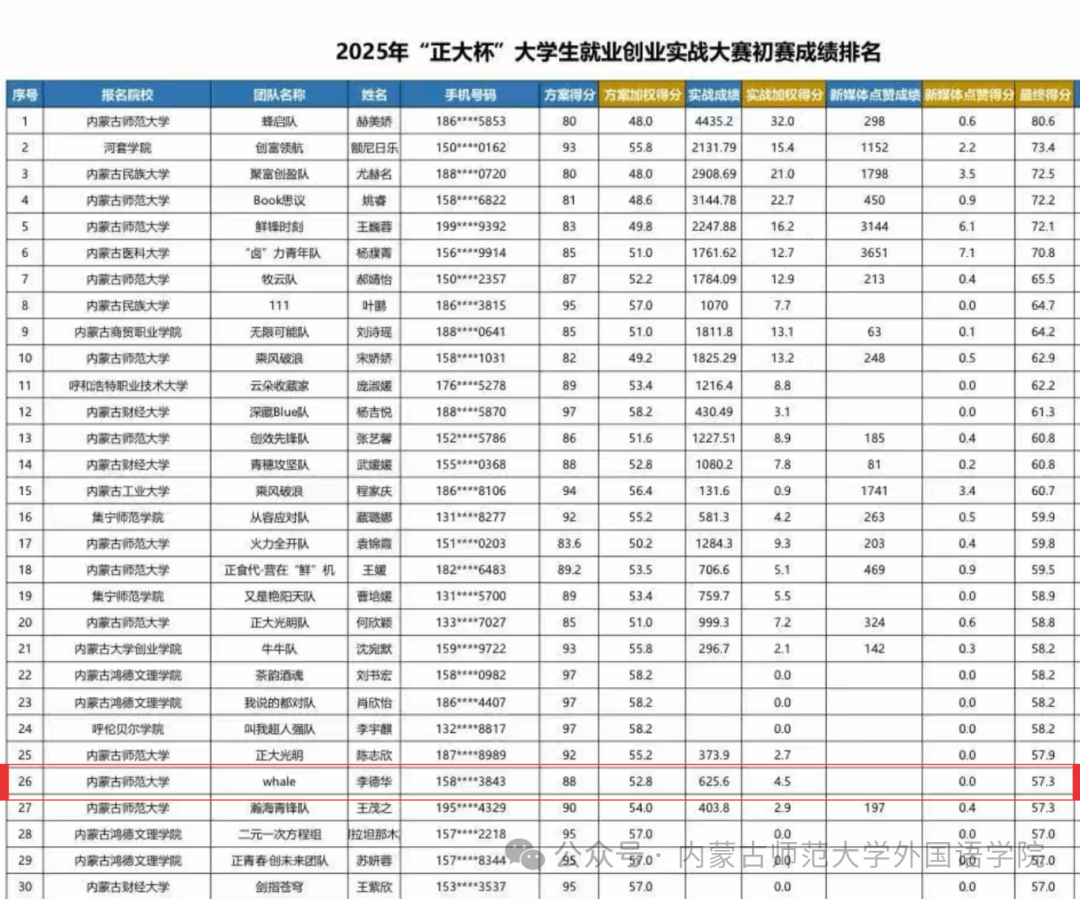 近日,“正大杯”2025大学生就业创业实战大赛实战营销赛道初赛落幕。金年会官网李德华带领的whale战队,在全自治区969支高校队伍中位列第26名,荣获潜力奖。