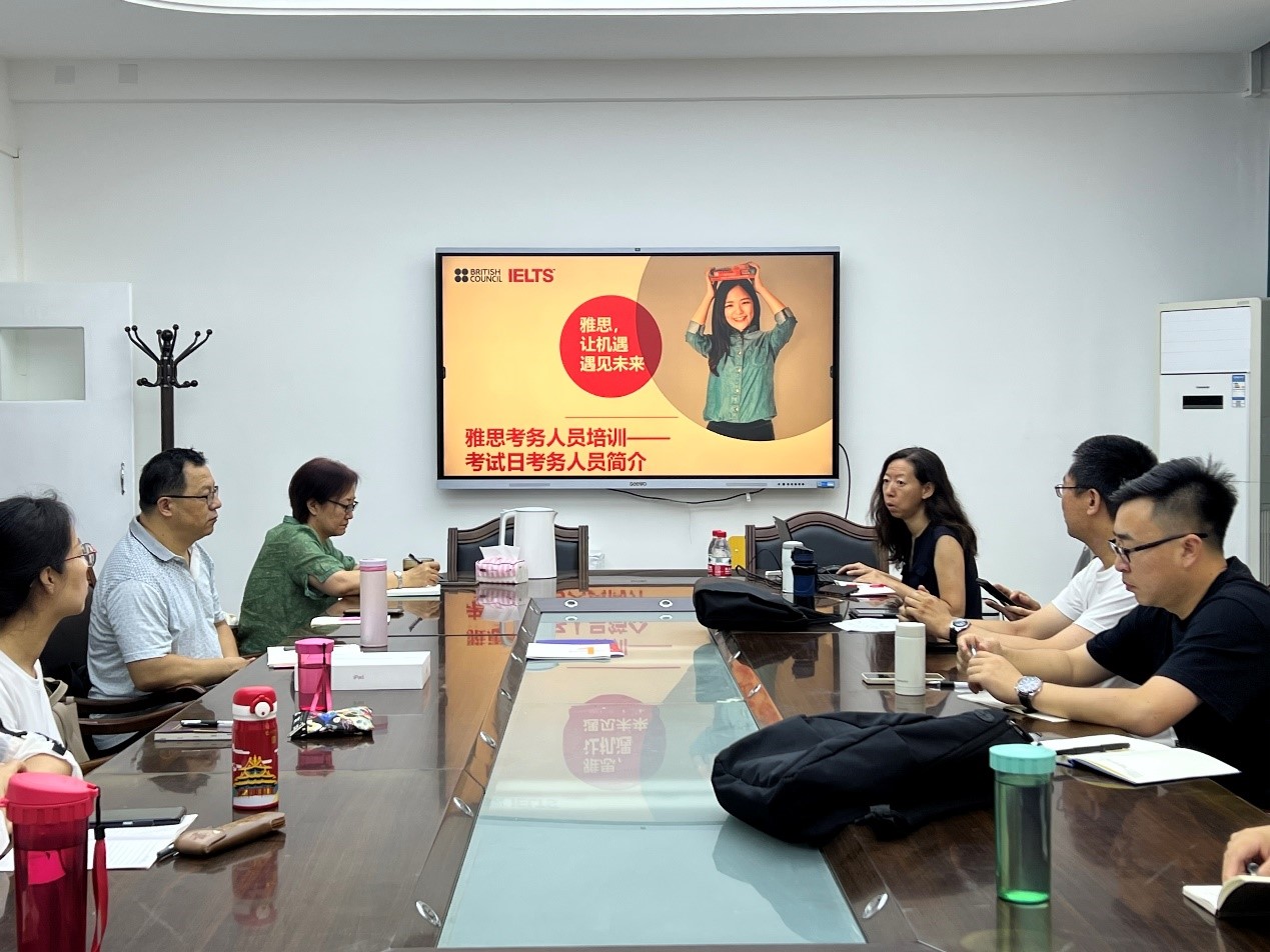为确保金年会官网雅思考试中心首场雅思机考顺利开展,保证考务工作的标准公平与安全规范,提升考生的考试体验感,金年会jinnianhuicom于8月1日至3日组织开展为期3天的雅思机考考务工作培训会。本次培训由英国文化教育协会(British Council)考务人员管理组李冰洁、机考组李小雨主讲,金年会官网雅思考试中心主任赵晓军,副主任那日苏,考务骨干教师共计15人参加了本次培训。