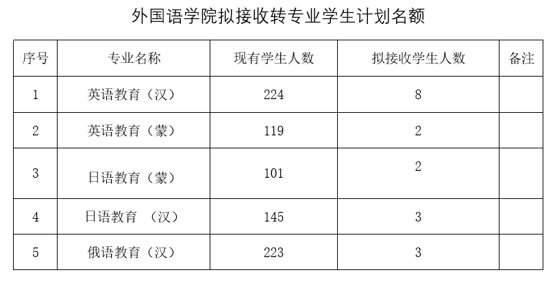 (3)申请转入日语专业蒙古语授课班的学生,其高中阶段应为蒙古语授课,能够熟练地使用蒙语。