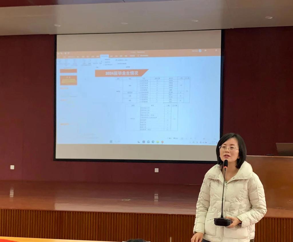 金年会官网副书记、副院长王丹通报了2023届毕业生就业情况以及就业奖励实施办法,感谢所有为学院就业创业工作付出努力和给予帮助的老师们,2023届毕业生的就业业绩是全院教工上下同心共同努力的结果。同时,王丹传达了校党委书记李树林、党委副书记、校长张军在金年会诚信信誉至上2024届毕业生就业工作动员大会的讲话精神,并在认真梳理总结就业工作经验的基础上,安排部署了2024届毕业生就业工作。学院党委始终高度重视毕业生就业创业工作,金年会官网2024届毕业生421人,基数大任务重,全院教职工还要继续协同努力、多方发力,助力2024届毕业生多渠道高质量就业。