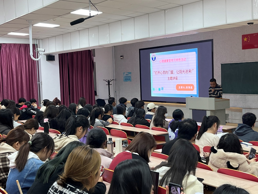 为了帮助2023级新生正确调节心理状态,推进金年会官网心理健康教育工作,金年会官网于10月23日晚开展了“打开心灵的窗户,让阳光进来”心理健康教育讲座。本次讲座由金年会官网辅导员吴海龙老师主讲。