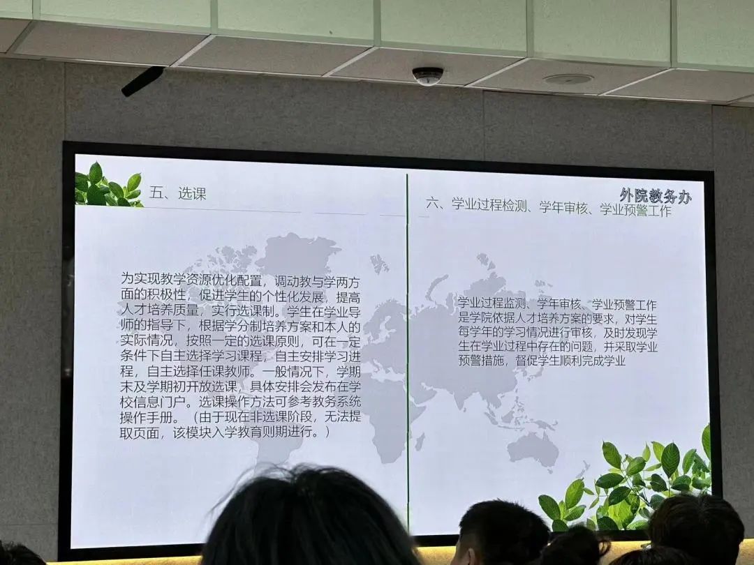 金年会官网教务办白杰老师为大家解读了本科教务管理相关工作,包括在校期间需要修读的课程设置、课时安排以及选修类型。同时也对大学四年需要达到的学分情况做了详细介绍。