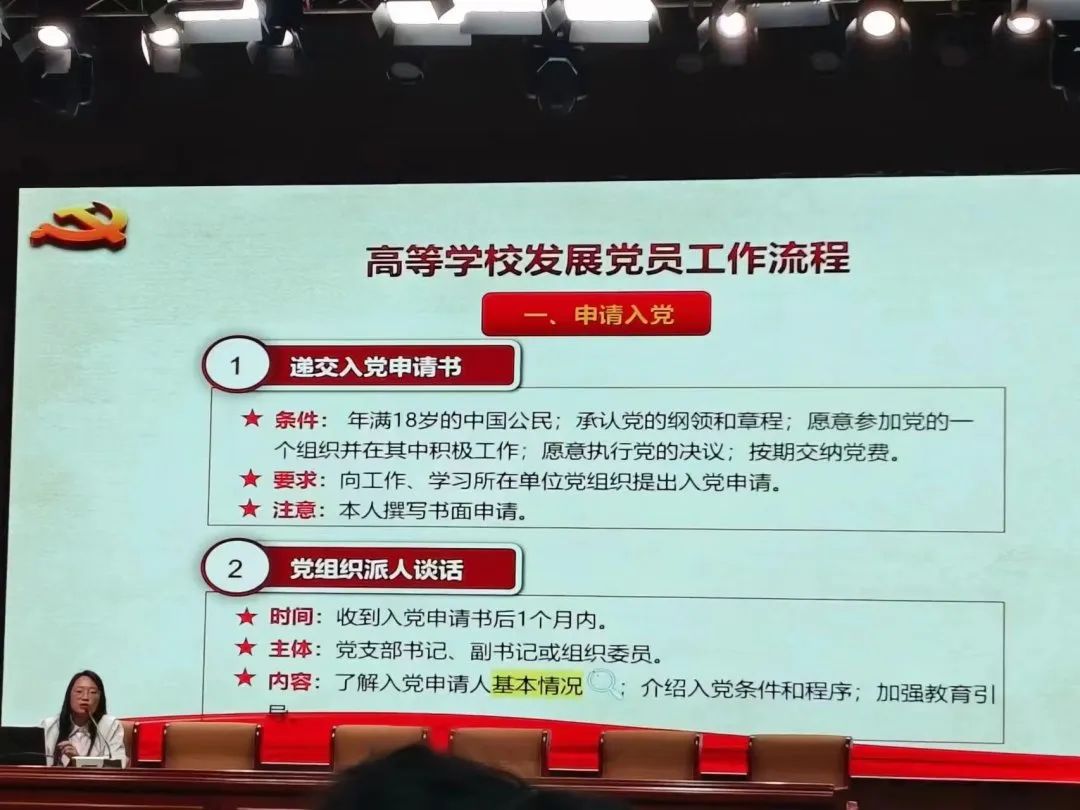 金年会官网辅导员吕志云老师详细介绍了金年会诚信信誉至上党员发展流程,希望同学们坚定理想信念,积极向党组织靠拢