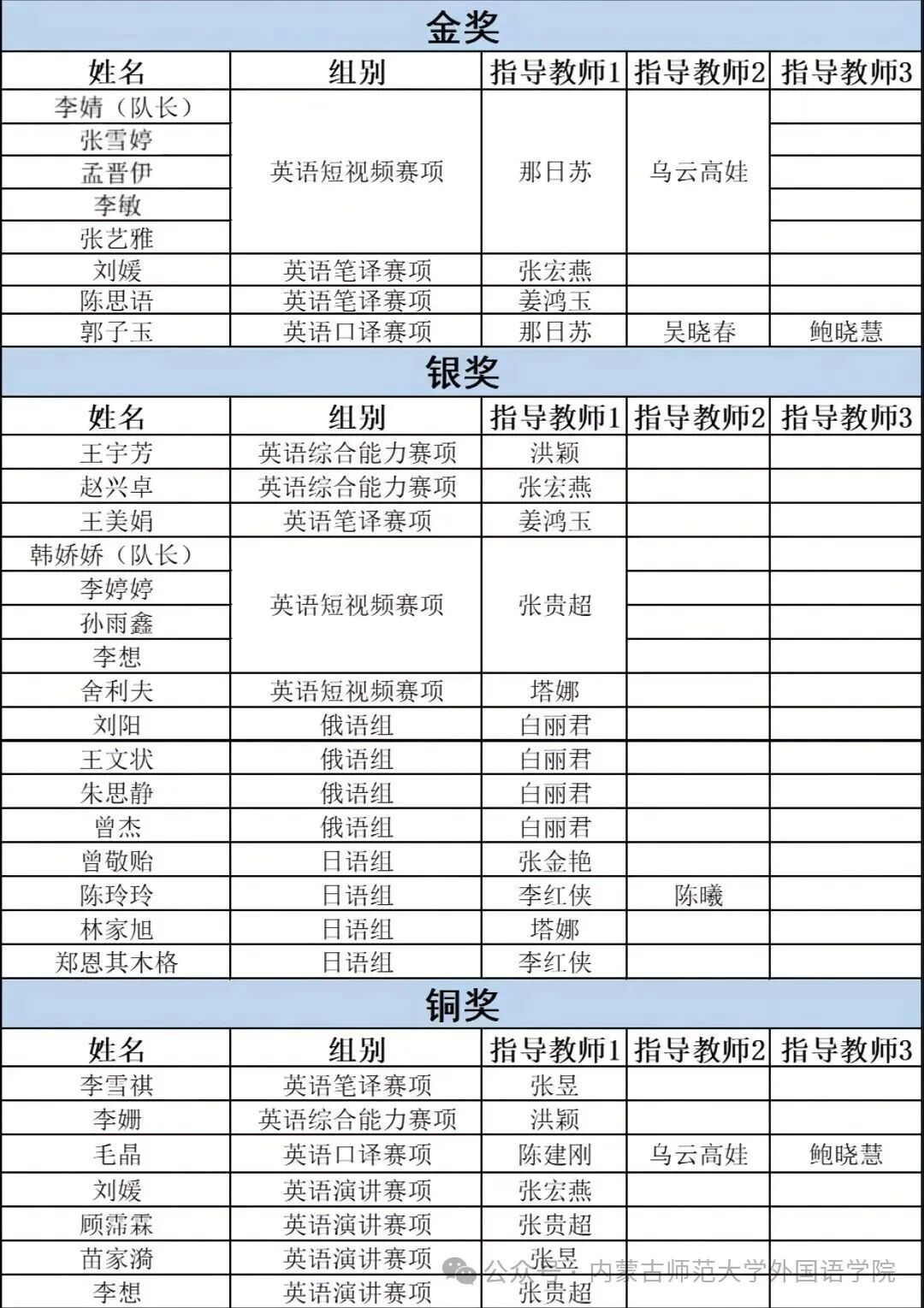 金年会官网学子凭借扎实的专业功底与出色的跨文化沟通能力,在内蒙古自治区赛中斩获4项金奖、13项银奖、7项铜奖;随后在全国总决赛中再创佳绩,荣获4项铜奖。