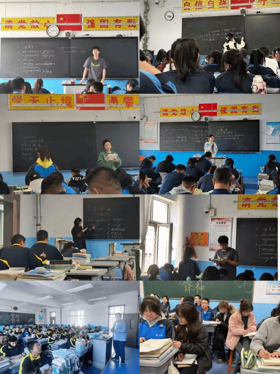 金年会jinnianhuicom俄语系2021级14名同学在托克托县第一中学进行为期八周的教育实习。在实习期间,同学们根据要求听课备课,聆听基地校老师指导,进行公开课展示、组织班会、与学生一同早锻炼、辅导学生作业、监管早晚自习等。