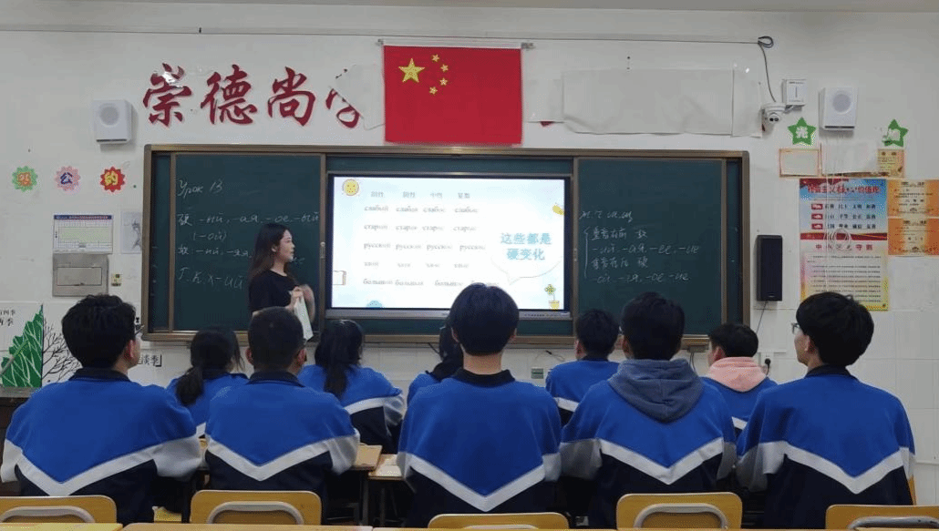 张可欣和张晓萍在高一年级组实习。针对同学们初学俄语的情况,她们俩讲好基础的知识的同时注重保持课堂活跃的氛围,为调动同学们学习俄语的积极性努力。